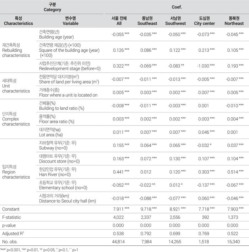 Characteristics of Sub-regions, Redevelopment, Building Age, Redevelopment Stage, Hedonic Price Model키워드: