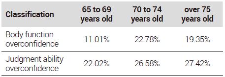 또한, 연령대별 자신의 신체기능 및 판단능력을 과신하는 현상을 살펴보기 위해 측정항목 중 d1, d2와 연령데이터를 교차 분석한 결과인 <표 10>을 보면, 초기 고령자 집단에 비해 중·후기 고령자집단에서 과신 현상이 높게 나타남을 확인할 수 있다. 실제 신체 및 판단능력이 저하되었을 가능성이 높은 중·후기 고령자의 이러한 의식은 실제 도로에서 상당한 위험요소로 작용될 가능성이 높을 것으로 판단되는 바 고령운전자 중 중·후기 고령자를 중심으로 신체에 대한 변화를 인지하고 수용을 위한 노력이 우선적으로 시행될 필요가 있다.