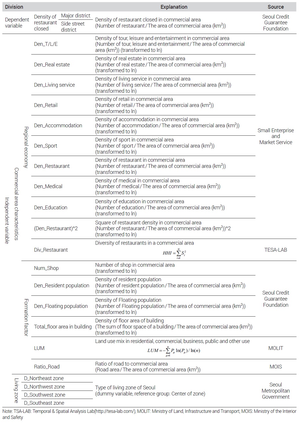 김현철·이승일, 2019. “서울시 골목상권 매출액에 영향을 미치는 요인에 관한 연구”, 「서울도시연구」, 20(1): 117-134.