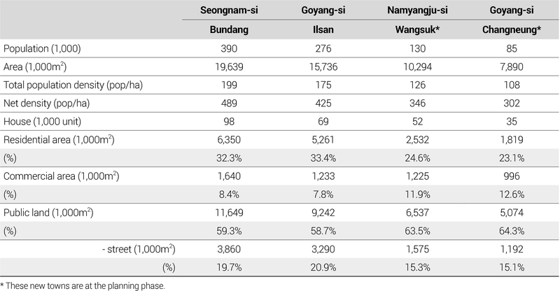 본 연구는 1기 및 3기 신도시를 대표하는 각 2개의 대상지를 선별하여 분석하였다. 1기 신도시로 1992년 말 준공된 일산과 1996년 말 준공된 분당을 선정하였고, 3기 신도시 중 규모가 큰 2028년 사업 준공을 목표로 계획 진행 중인 남양주 왕숙1과 2029년 사업준공을 목표로 계획 진행 중인 고양 창릉을 선정하였다.