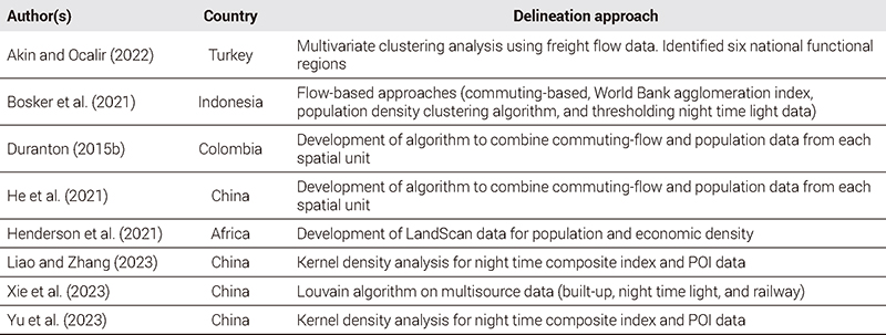 Prior studies have utilized commuting and flow data to delineate urban clusters and metropolitan areas, improving city and regional descriptions (Akin and Ocalir, 2022; Bosker et al., 2021; Duranton, 2015b; He et al., 2021). Akin and Ocalir (2022) defined functional regions and megaregions in Turkey using intercity freight flow patterns and economic indicators. Bosker et al. (2021) employed daily Origin-Destination (O-D) flow data to analyze worker movements between districts in Indonesia. Duranton (2015b) used labor commuting patterns to delineate metropolitan areas in Colombia. He et al. (2021) suggested that wavelet transform analysis of population movement data enhances the understanding of city interconnections and urban cluster boundaries. However, obtaining round-trip flow data can be challenging, especially in developing countries, and reliance on administrative boundaries may limit the effectiveness of flow-based approaches (Bosker et al., 2021; Dingel et al., 2021).
