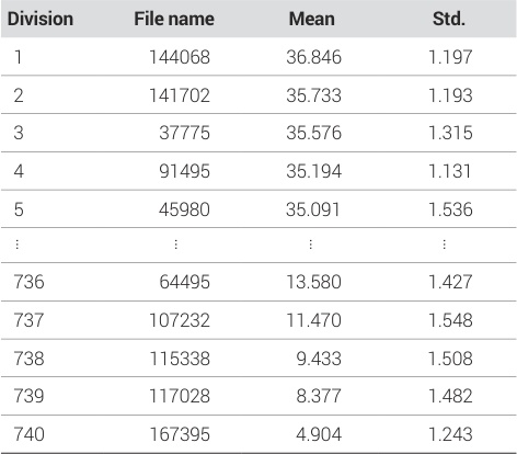 본 연구에서는 쇠퇴경관에 대한 인간의 주관적 인식을 분석하기 위해 Trueskill 알고리즘을 사용하였다. 주관적 쇠퇴경관 설문조사 결과에 Trueskill 알고리즘을 적용한 결과는 <표 3>과 같다. 알고리즘은 기본 평균값 25와 표준편차 8.3에서 시작한다. 평균값은 이미지가 많이 선택될수록 높아지며 표준편차는 낮아진다. 본 연구에서는 평균값이 높아질수록 많은 사람이 쇠퇴했다고 선택한 경관이다. 본 연구에서는 평균값을 종속변수로 사용하였으며 쇠퇴점수로 정의하였다.