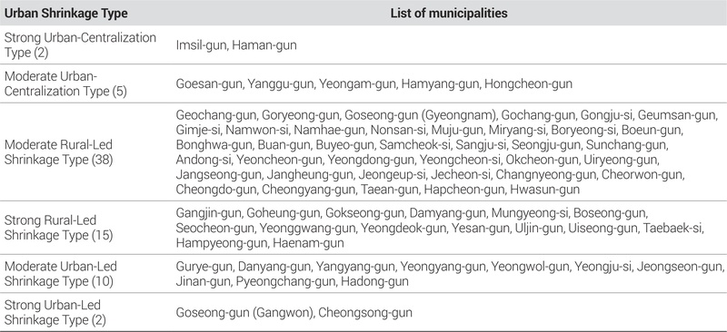 This paper is a revised and expanded version of a part of Kang, M.K.’s 2024 master’s thesis, “A Study on the Spatial Shrinkage Characteristics of Depopulating Cities,” which was originally presented at the 2024 Fall Conference of the Korea Planning Association.