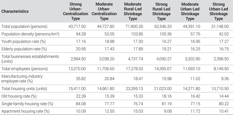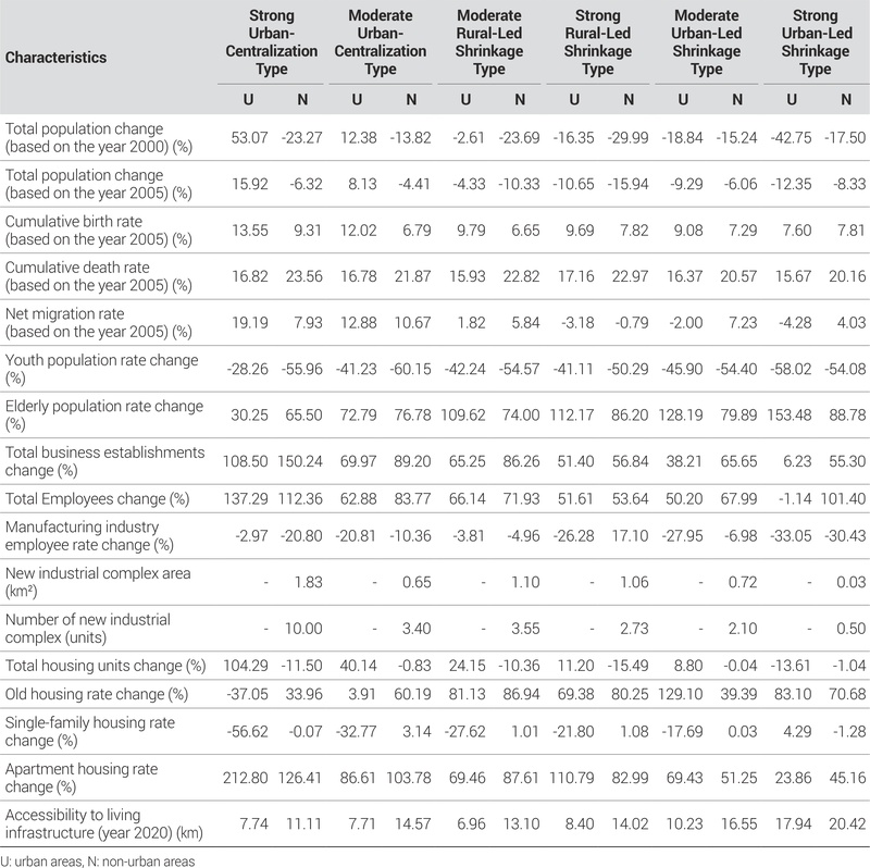 2. Analysis of Characteristics by Urban Shrinkage Spatial Pattern Types