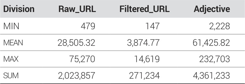 수집한 2024년의 전체 블로그 포스팅 URL 데이터는 <표 9>와 같이 총 2,023,857개였으며, 전처리 과정을 거친 후 실제 분석에 이용된 URL의 개수는 271,234개이다. 이어서 분석에 사용한 형용사는 4,361,233개로 나타났다.