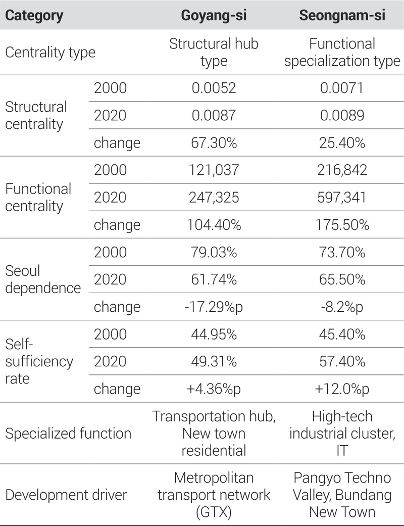 1) 고양시: 구조적 중심성과 기능적 자족성의 동시 강화