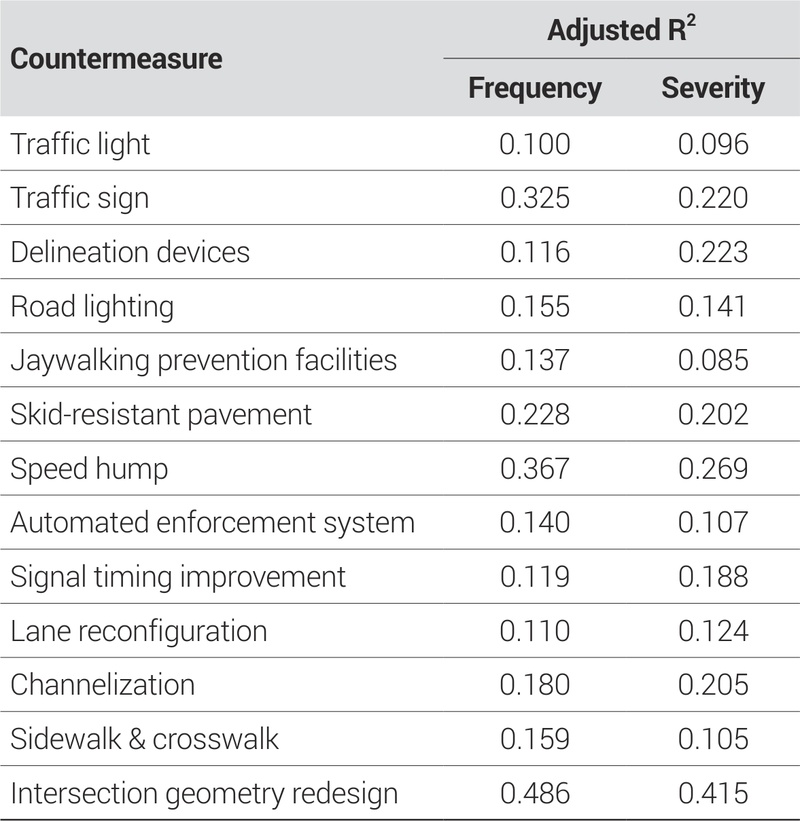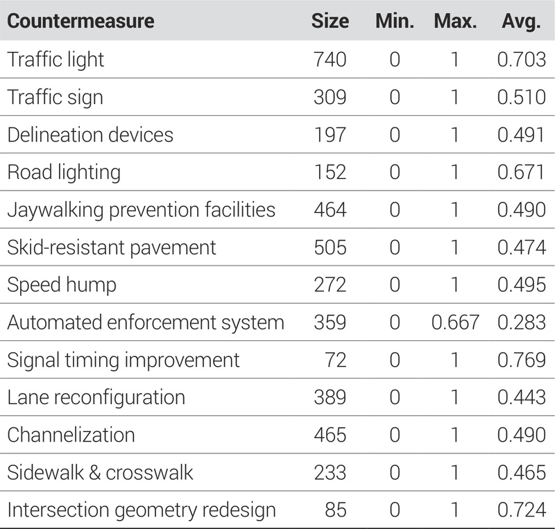 The review of previous studies analyzing the effectiveness of traffic safety countermeasures provided the following three implications.