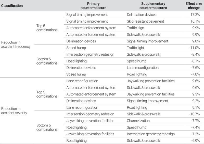 The 13 countermeasures selected in this way are representative items frequently applied in actual fields, and they were used in the following chapter as basic data for interaction effect analysis based on the application status and combined implementation type at each intersection.