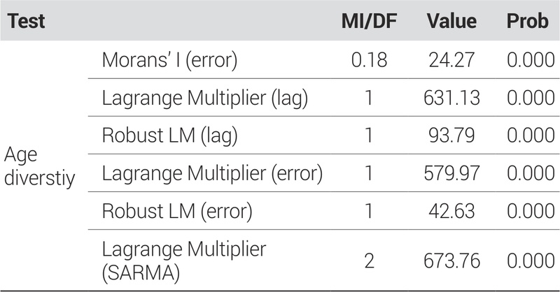 이어서, 연령 혼합도에 영향을 미치는 도시환경 요인을 실증적으로 분석하였다. 선행연구를 바탕으로 상업 특성, 토지이용 특성, 접근성 특성 등의 변수를 설정하였으며, 소비 규모가 연령 혼합도에 영향을 줄 수 있는 점을 고려하여 총 카드 지출 금액을 통제변수로 설정하였다. 회귀 분석에 앞서, 종속변수와 독립변수의 기술통계분석을 수행하였으며, 변수 간 다중공선성 문제를 검토하기 위해 분산팽창계수(Variance Inflation Factor, VIF)를 분석하였다. 모든 독립변수의 VIF값이 10 미만으로 나타나, 다중공선성 문제는 크지 않은 것으로 판단된다. 이후, 최소제곱법(Ordinary Least Squares, OLS) 모형은 잔차의 제곱합을 최소화하며, 변수 간 관계를 정량적으로 분석하는 데 활용된다. 그러나 OLS 모형은 공간적 자기상관성을 고려하지 않는다는 한계가 있다. 실제로 Moran’s I값을 통해 종속변수인 연령 혼합도에 공간적 자기상관성이 존재함을 확인하였다. 이에 공간적 자기상관성을 제어할 수 있는 공간회귀모형을 적용하여 인접 격자 간 영향을 반영한 분석을 수행하였다.