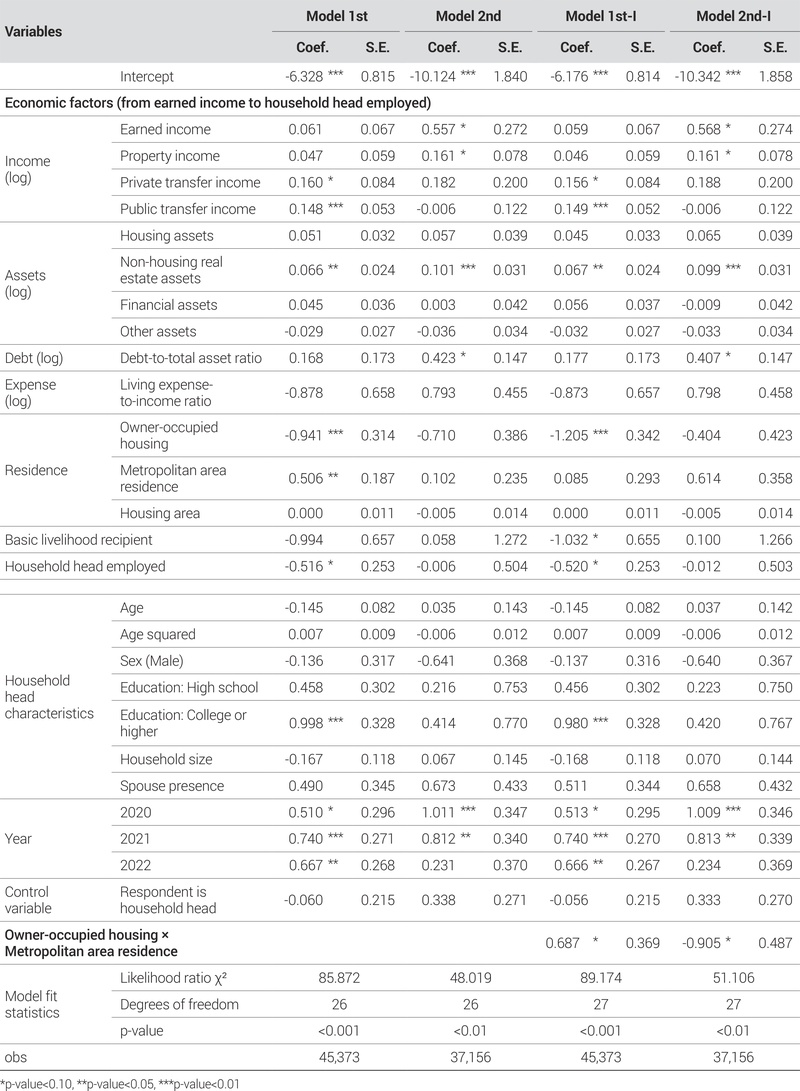 마지막으로, 상호작용항(자가거주여부×수도권 거주여부)을 추가한 <Table 9>의 Model 1st-I, Model 2nd-I의 분석 결과를 살펴보았다. 분석 결과, 1차 베이비부머와 2차 베이비부머 간에 상반된 양상이 드러났다. 1차 베이비부머의 경우 자가 거주와 수도권 거주가 결합될 때 귀농·귀촌 의향이 높아지는 반면, 2차 베이비부머는 오히려 낮아지는 것으로 나타났다.
